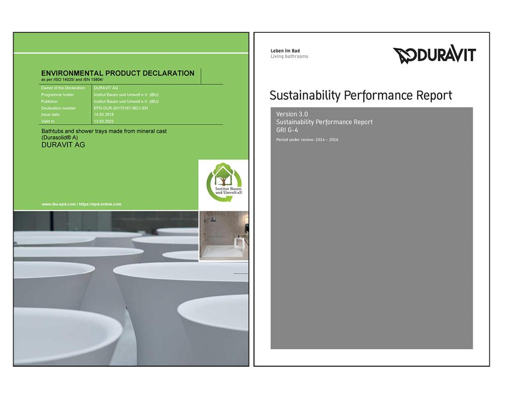 Desde el año 2011 el informe de sostenibilidad se realiza en Duravit según las directrices G4 de la internacionalmente reconocida Global Reporting Initiative (GRI). Esto permite un enfoque estandarizado para los informes sobre el rendimiento económico, ecológico, social y gestión empresarial.