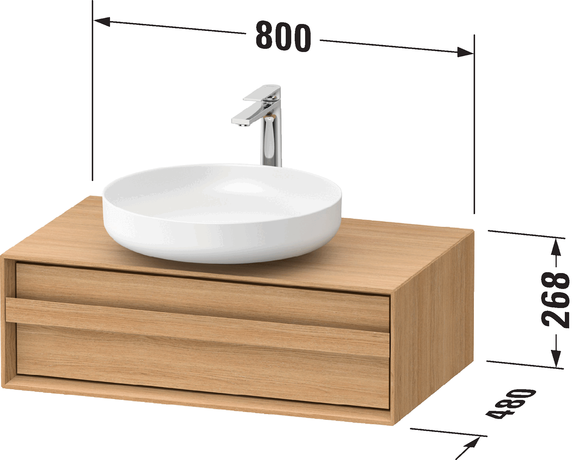 Mueble bajo lavabo para encimera, OC50900H5H50000 Roble natural macizo Mate Madera maciza, Tirador Roble natural macizo