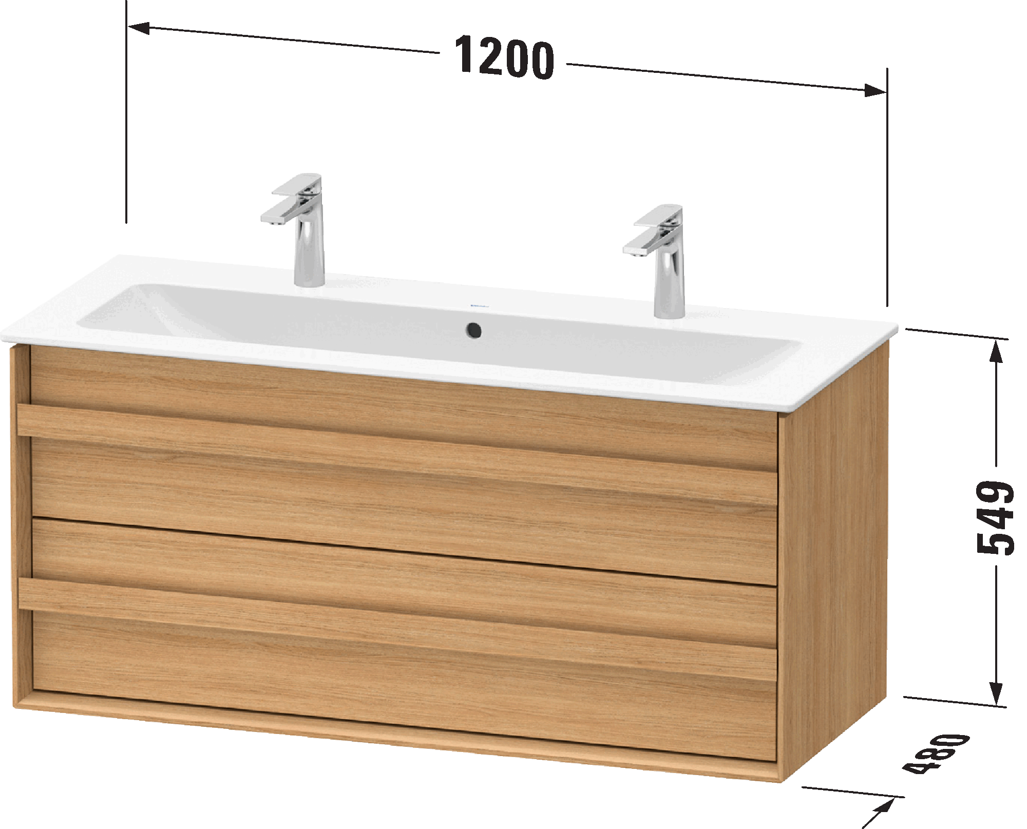 Mueble bajo lavabo suspendido, OC45190H5H50000 Roble natural macizo Mate Madera maciza, Tirador Roble natural macizo