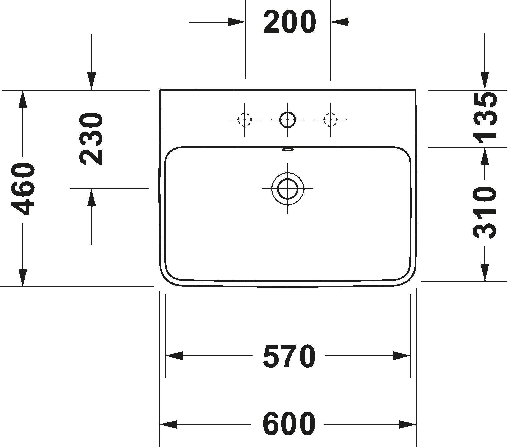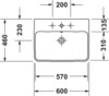 Rectangular, Plataforma para grifería: Sí, Rebosadero: Sí, Parte inferior vitrificada, Pared posterior vitrificada: No, 600 mm