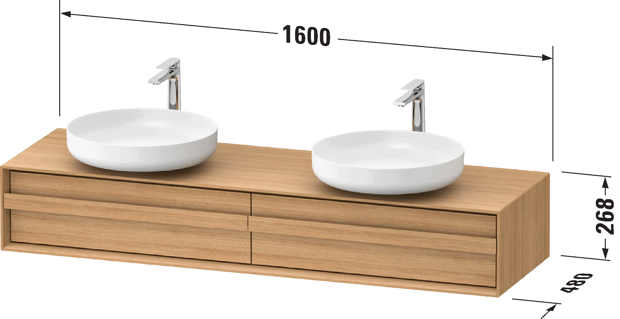 Mueble bajo lavabo para encimera, OC50930H5H50000 Roble natural macizo Mate Madera maciza, Tirador Roble natural macizo