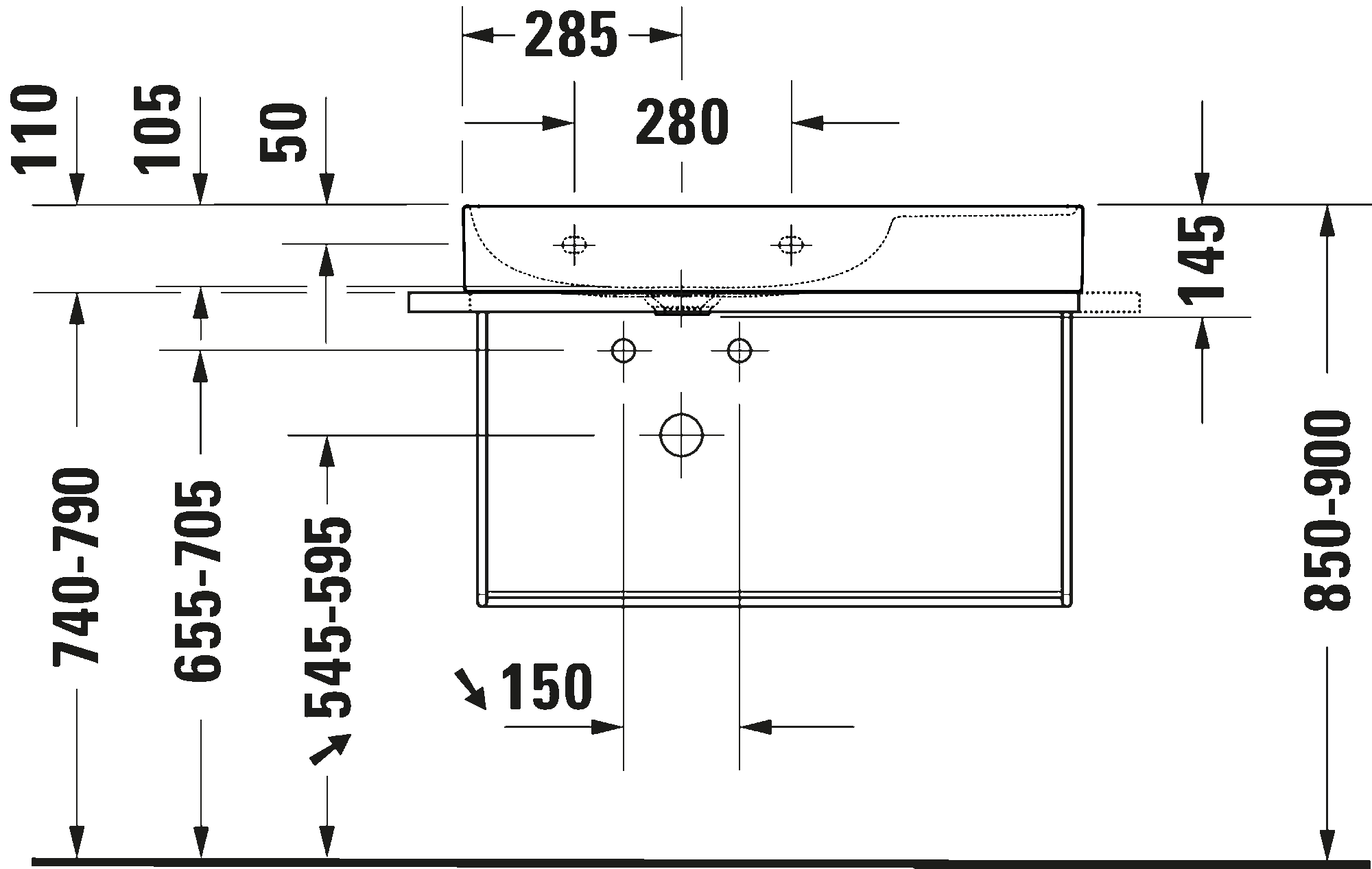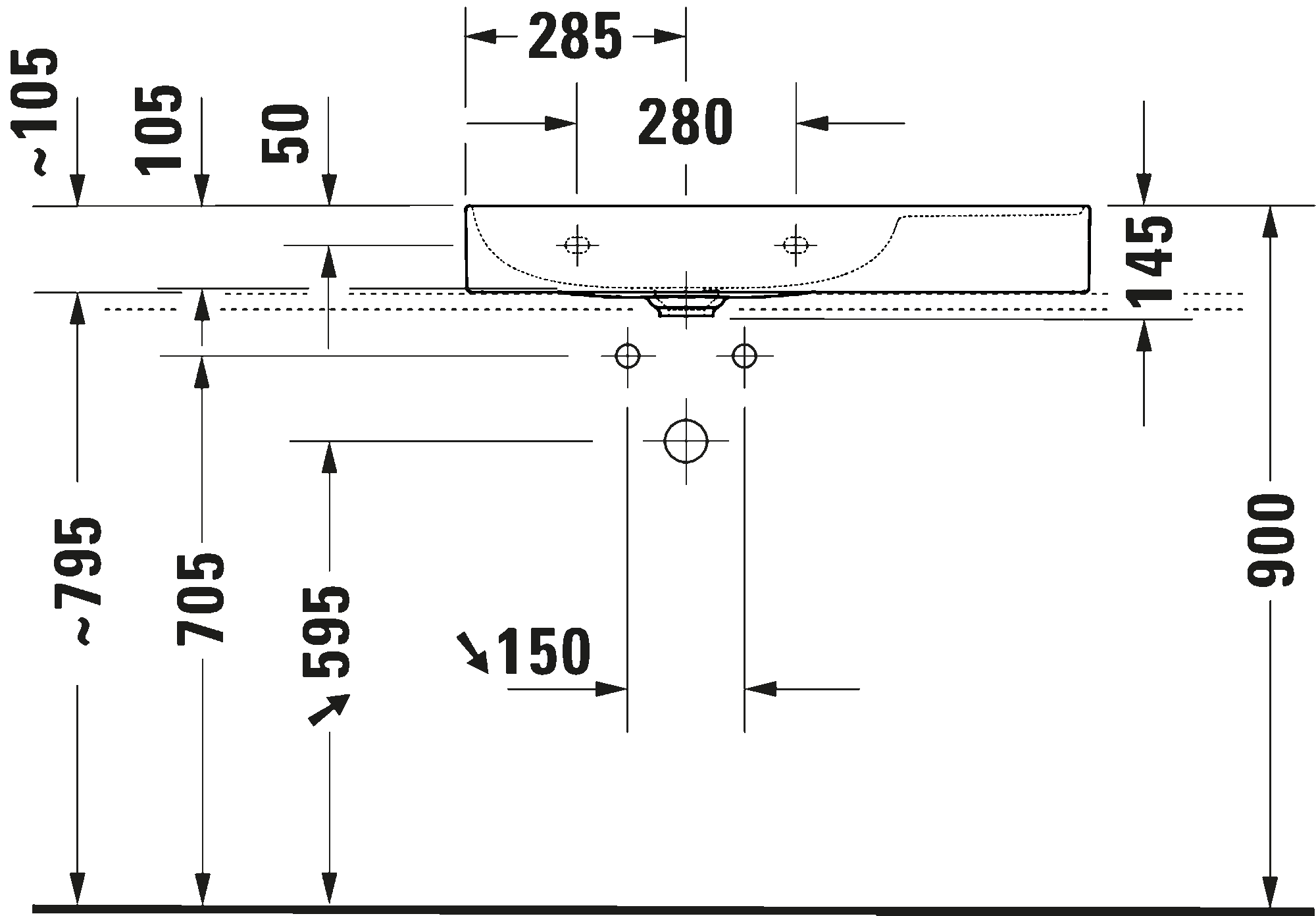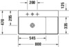 DuraCeram®, Asimétrico, Plataforma para grifería: Sí, Rebosadero: No, Incl. sombrero de desagüe cerámico, Incl. sombrero de desagüe, Parte inferior vitrificada, Pared posterior vitrificada: No, 800 mm