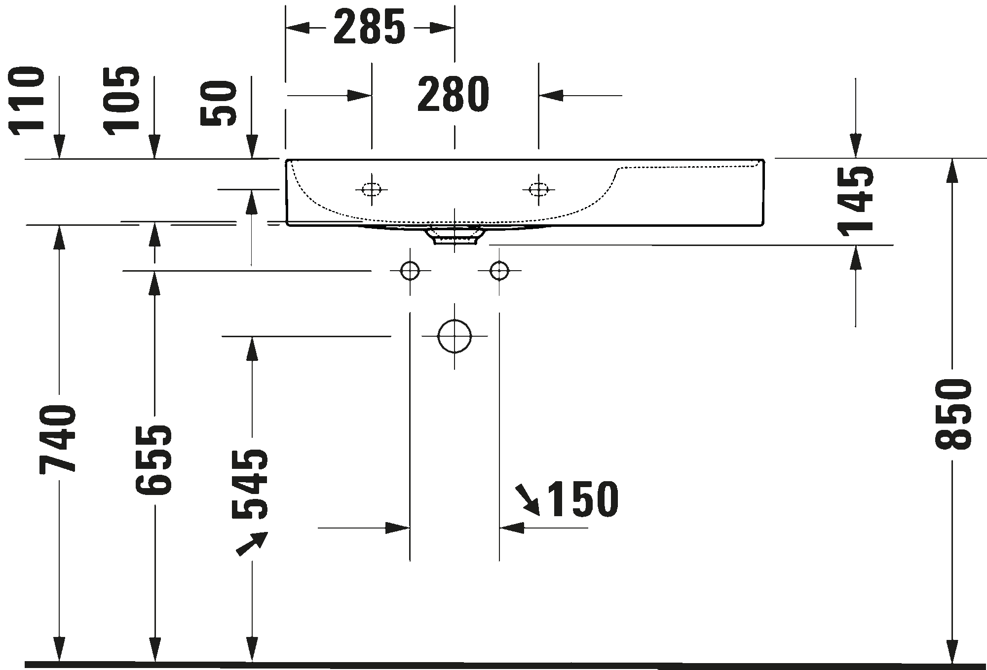 Lavabo, 2348800041 Blanco brillante, Rectangular, Cantidad de puestos de lavado: 1 Izquierda, Número de orificios para la grifería: 1 Centro